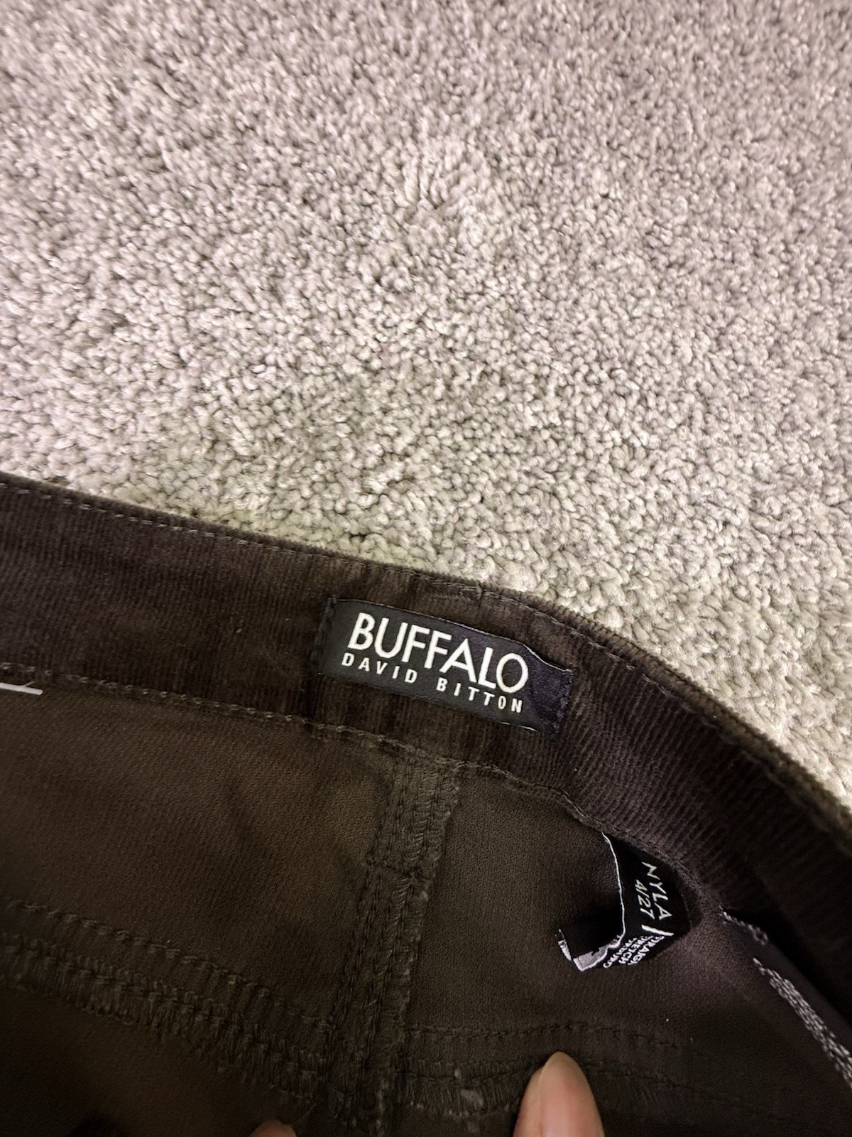 The Buffalo David Bitton Women's Stretch Straight Leg Corduroy Pants in Rosemary are a stylish and versatile addition to any woman's wardrobe. Made from a comfortable cotton-spandex blend, these pants feature a solid brown color and a classic straight leg fit. With a mid-rise and flat front design, these pants are machine washable for easy care and are perfect for everyday wear. The stretch fabric ensures a comfortable and flattering fit, making these pants a must-have for any fashion-conscious woman. 5028