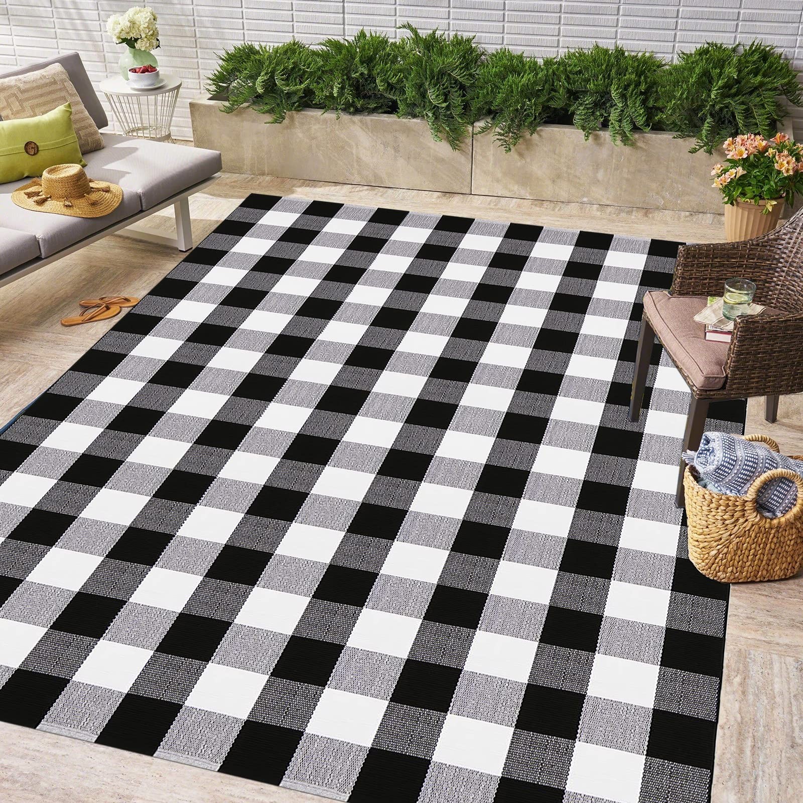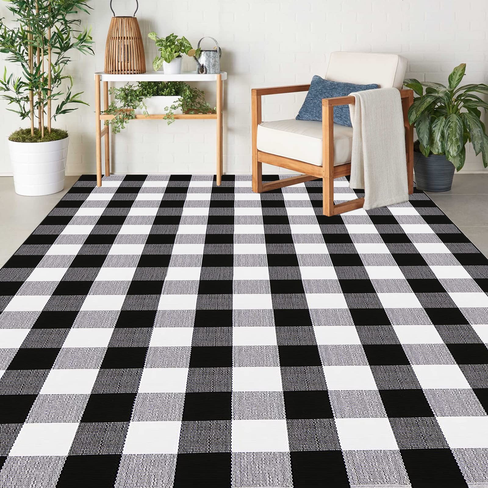 Our buffalo check doormat is the perfect way to convey your style to your guests! It Makes the perfect combination with welcome doormats! Receive your guests with elegance! Perfect for Fall, Halloween, and Winter front porch decor! Feature: ‣45% cotton | 45% polyester | 10% viscose ‣Hemmed edges provide long lasting wear. ‣The perfect custom entry rug for a warm, bold decor theme. ‣Create an inviting, classic entryway for your home. ‣Standard size to fit most doors and accommodate our standard size doormats for easy layering. 100% SATISFIED CUSTOMER SERVICE: It is our commitment to provide our customers with the Top Grade products and services if you have any question, please feel free contact us at first, We will meet your all request, return or refund is available, make you satisfied. ✅【PREMIUM QUALITY】This buffalo plaid rug is made of high-quality cotton, thick and durable designed for a long-lasting life, and great for everyday use. ✅【CLASSIC DESIGN】The black and white rug offers casual elegance in the form of a classic plaid pattern, Giving your home a warm and cozy vibe. ✅【MULTIPURPOSE USE】Black and White Plaid rug Can be used as a front door mat, bathroom rug, laundry room rug, porch mat, welcome mat, kitchen rug, apartment rug, area rug, entryway rug, sofa mat, and more. ✅【SUPER POPULAR IN PINTEREST】Decorate your home with our standard-size buffalo plaid outdoor rug. PERFECT FOR LAYERED DOOR MAT, put it on your front porch with a HELLO/WELCOME doormat on top, adding more style to your front porch decor. the latest and most trendy farmhouse decor! ✅【EASY CARE INDOOR/OUTDOOR RUG】Machine wash with mild detergent and water, Do not use chlorine or bleach, Regular vacuuming, and spot cleaning will help the rug remain attractive and serviceable.