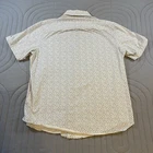 The Bugatchi Men's Short Sleeve Button-Up Shirt in size Medium is made from 8-way stretch cotton, offering a comfortable and stylish fit. This shirt features a geometric blue pattern on a white background, making it perfect for casual occasions during the summer, fall, and spring seasons. The collared neckline, button closure, and regular fit add to the classic appeal of this Bugatchi Uomo shirt, suitable for any man's wardrobe looking for a versatile and fashionable piece. Gently used in good condition with no stains, damage or other imperfections. Super soft.