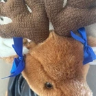 Build A Bear 2003 Deer Fawn Reindeer with Biker Outfit. Biker, Motorcycle Girl Skirt and Jacket Outfit. Blue bows on ears. In good overall condition as shown in photos. Outfit does have a few loose strings and areas of light wear as shown.