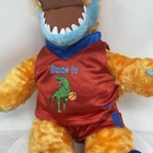 This Build-A-Bear Workshop plush toy is a limited edition Brachiosaurus dinosaur character dressed in a basketball-themed outfit. The 18-inch orange plush bear features a blue shirt, shorts, shoes, and jersey, making it an adorable and unique addition to any plush toy collection. With machine washable material and a retired status, this 2019 release is perfect for dinosaur enthusiasts or fans of Build-A-Bear Workshop's special editions. FULLY CLOTHED RARE