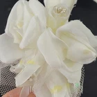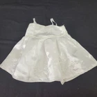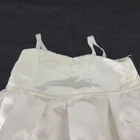 This is a 7 piece Wedding outfit set in played with condition. * Wedding Dress - has a few small spots (see close up pictures) * Underwear - has some snags/freys * Garter * Veil - has some loose threads * 2 Shoes/Slippers - one shoe has a spot on the bottom * Bouquet - some of the yellow accent appears to be brittle and a few pieces have come off.