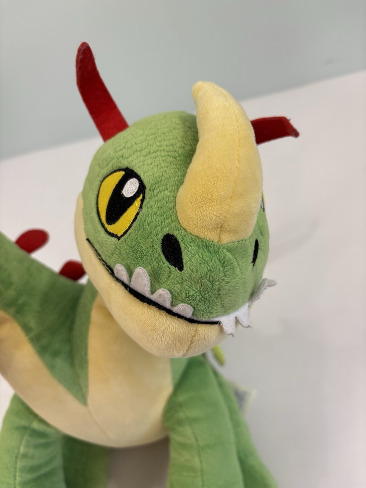Note this is pre-owned and does show signs of wear. The back of the dragon near the tail needs to be re-stitched. A couple marks. See photos. The Build-A-Bear How To Train Your Dragon Barf & Belch Plush is a medium-sized stuffed animal featuring a dragon design in green color. This two-headed plush toy from the Build-A-Bear Workshop is part of the retired character family collection, making it a unique and sought-after item for fans of the How To Train Your Dragon franchise. With its quirky design and high-quality construction, this plush toy is sure to be a charming addition to any stuffed animal collection.