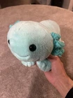 The product is a Build-A-Bear Workshop plush soft toy in the shape of an axolotl, featuring a mint green color. This collectible item is part of the BAB Blue collection and is made of plush material. The toy is designed to appeal to fans of soft toys and stuffed animals, especially those interested in unique and colorful characters like the axolotl.