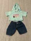 This is a Build-A-Bear Workshop outfit from the Girl Scouts collection designed for a 16-inch bear. The multicolor shirt is made of cloth and is an original clothing item from the brand. The set includes only the outfit, suitable for all occasions. It was manufactured in China during the time period of 2010-2019.
