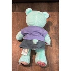 Adorable Build-A-Bear plush, a delightful addition to any collection. This charming bear features a unique light blue fur and is dressed in a cute purple "Cookie Boss" t-shirt and denim skirt. The bear's paws showcase fun details, including a "Thin Mints" design on one foot and a colorful Girl Scout-themed pattern on the other. Perfect as a cuddly companion for children, a whimsical gift for Girl Scout enthusiasts, or a sweet decorative piece for any room. Keywords: Build-A-Bear, Plush, Stuffed Animal, Girl Scout, Cookie Boss, Thin Mints, Collectible, Blue Bear, Purple Shirt, Denim Skirt, Toy, Gift, Kids, BAB