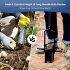The bulb planter tool is a ideal lawn and garden tool for planting tulips, crocus, dahlias, gladiolus, lilies, and so on. T-Handle & Serrated Blade: The bulb planting tool is equipped with a T-long handle which gives it better maneuverability, and prevents excessive bending, allowing you to work from a standing position. Saving you time and your back.The serrated base with a widened ring iron sheet inside of the bottom, which helps to dig holes and push soil easily. Unique Foot Pedal Design: This grass plugger tool with special double-foot pedal design makes planting job efficient and helps you apply the downward force with your body weight maximally, bringing optimal digging performance. Also, you can use it with your right or left foot alone according to your habits. In addition, the raised pedal helps push the soil out easily when you dig soil. High-quality Iron Material: The bulb planter tool is made of high-quality iron and stainless steel material, and it is painted surface. It is sturdy and durable. Easy to Use: Insert, step on, twist, then pull and you’re ready to plant. Step down the pedal on two sides, you can control how deep want to go into the dirt (Dig Holes: 3.5'' dia, Max. 5.1'' depth). Step down the raised pedal effortlessly to release your soil. This bulb planter tool will be the best assistant for your planting career. Multifunctional Garden Tool: The bulb planter tool is mainly for digging holes to plant bulbous plants, for example, tulips, crocus, dahlias, gladiolus, lilies, ground covers, and vegetables. Also, it can be used as a sod plugger, weeding tool, and soil sample tool.