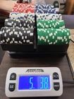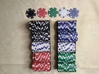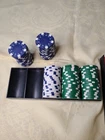 Elevate your poker game with this set of 200 poker chips, each weighing 11.5 grams. Made of high-quality clay composite material, these chips feature a striking dice striped design that will make your game stand out. Each set comes with a handy holder to keep your chips organized. Perfect for avid poker players or collectors, these chips are ideal for use in home games or even at a casino. With a classic design that will never go out of style, these chips are sure to please. Don't miss out on this bulk set of 200 poker chips that will take your game to the next level. These are in like new condition. They are quite heavy the total weight is 5 LBS 4 OZ Thank you for looking.
