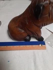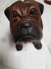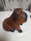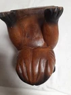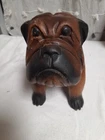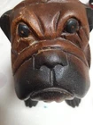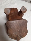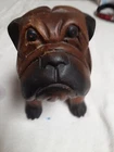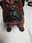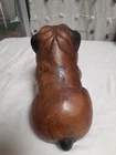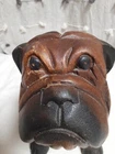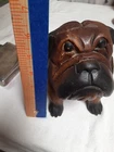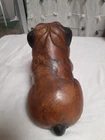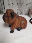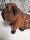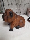 Vintage Hand Carved Wooden Bull Dog Figurine 8x7x4 Good condition . He is very cute and adorable has some wear . he is sitting position. no marks Good condition. Disinfected. He Weights He weights little over a pound. his body has marks scratches. see photos as is . Pre-owned item. he is not heavy for the door stop. he can sit on table dresser. I do not see any signature on him If you want to you can restore him and make him pretty. Thank you