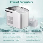 Model Name: WBJ-10C Ice Making Capacity: 33LBS /24H Ice Shape: Bullet Ice Cube Number: 9 cubes each round Ice Making Time: 7-8 minutes each round Ice Cube Size: Φ10*Φ24*26mm Ice Cube Weight: 7g Housing stainless steel Power Supply: 110-120V/60Hz Power: (110V/105W) Ice Basket Capacity: 0.5kg Water Tank Capacity: 1.5L Refrigerant: R600a Foaming Agent: C5H10 Climate Type: N/SN/ST/T Working Environment: 10°C-38°C N.W/G.W: 7/8kg Product Size: 225*320*295mm Brown Carton Packing Size: 265*350*330mm 🍨 [EFFICIENT ICE MAKING] Fill our countertop ice maker with approximately 1.5 liters of water and enjoy soft bullet ice fast in 7-8 minutes. The Ice Cube Ice Maker Countertop can continuously make ice for up to 24 hours and provide up to 26.5 pounds of bullet ice fast, ensuring a steady supply of fresh ice for your home or party. 🍨 [USER FRIENDLY] This portable ice maker is user-friendly and easy to operate. Simply add water, press "SELECT" for ice size, press the "ON/OFF" button, and the first batch of ice will be ready in 7-8 minutes. When the water shortage indicator light is on, it indicates that there is a shortage of water in the inner chamber, reminding you to add water in time. When the ice full indicator light is on, it indicates that the ice basket is full of ice cubes, reminding you to take out the ice cubes in time. 🍨 [Energy Saving and Quiet] The low-frequency noise reduction compressor ensures efficient ice making while keeping the noise level low, generating only 40DB of noise, ensuring a peaceful atmosphere and a comfortable environment for any occasion. In addition, this industrial ice maker is also very energy efficient, which helps to save on electricity bills. 🍨 [Widely Used] This compact ice maker measures 8.9 * 12.6 * 11.6 inch. it can easily fit into most countertops and table tops and can also be taken out, and weighs only 17.6lb. it is suitable for coffee shops, hotels, pubs, supermarkets, bakeries, restaurants, offices, cold beverage stores, etc., and is especially suitable for personal or family gatherings. 🍨 [SELF-CLEANING FUNCTION] This countertop ice maker has a self-cleaning function, in standby mode, press and hold the ON/OFF button for 5 seconds, the unit will enter the self-cleaning mode and the cleaning indicator light will turn red, the whole process will take about 15 minutes. With our effortless self-cleaning function, it is easy to keep the interior clean, thus saving you more time and energy. 🍨 [Large/Small Ice Cubes Dual Mode Adjustable] This portable ice maker has the option to make large or small ice cubes. Press the On/Off button once, the unit will start working in small ice cube mode by default, and the small ice cube indicator light stabilizes in green. During the ice making process, press the select button to switch to large ice cube mode; the large ice cube indicator will light up to make large ice cubes. Thick ice can be used for mixing drinks and other frozen beverages, and thin ice can be put into fruit juice, milk tea or used as smoothies.