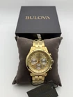 The Bulova 97B217 Classic Chronograph Stainless Steel Quartz men's watch is a stylish and elegant timepiece featuring a red, gold, and silver bezel color, along with a double-locking fold-over clasp for secure closure. With 23 jewels and a quartz movement, this watch boasts a classic design with arrow markers, Arabic numerals, diamond markers, and baton indexes on the dial. Its stainless steel case and bracelet band in gold color make it a durable and luxurious accessory suitable for everyday wear. The watch is brand new, comes with original box and packaging. Free Shipping included! Product Features: Brand: Bulova Collection Name: Classic Model #: 97B217 Case Material: Gold-Tone Stainless Steel Case Thickness: 12.1 mm Case Diameter: 45 mm Bezel: Fixed Movement: Japanese Quartz Caliber: 6S20 Crystal: Mineral Crystal Dial Color: Champagne Luminous: Hands & Markers Calendar: Date/Day Functions: Hour, Minute & Second
