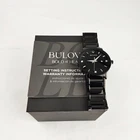 ⌚Bulova 98D144 Modern Futuro Black Dial/Band Quartz Men's Calendar Watch 42MM Product Information : Reference Number:98D144 Model:Bulova Futuro Band Color: Black Case Color:Black Band Material: Stainless Steel Case Material: Stainless Steel Case Shape:Round Technology:Quartz Case Width: 42mm Lug Width : 22mm Department: Men Water resist: 30 Metres Crystal Material:Domed Mineral Crystal Additional Functions: 3 Hand; Calendar Shipping And Return : We will process your order within 24 hours, and in the event of a weekend, will deliver to the post office on Monday. You can check the logistic news anytime, if you find that the logistic news is not updated please don't worry, it is possible that it just hasn't been updated yet. Please contact me in time, I will deal with it for you. We support return within 30 days for refund, after applying for return, please send the goods back to me in neat and tidy condition. When I receive the goods, I will arrange the refund for you immediately! Thank you for your attention!