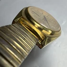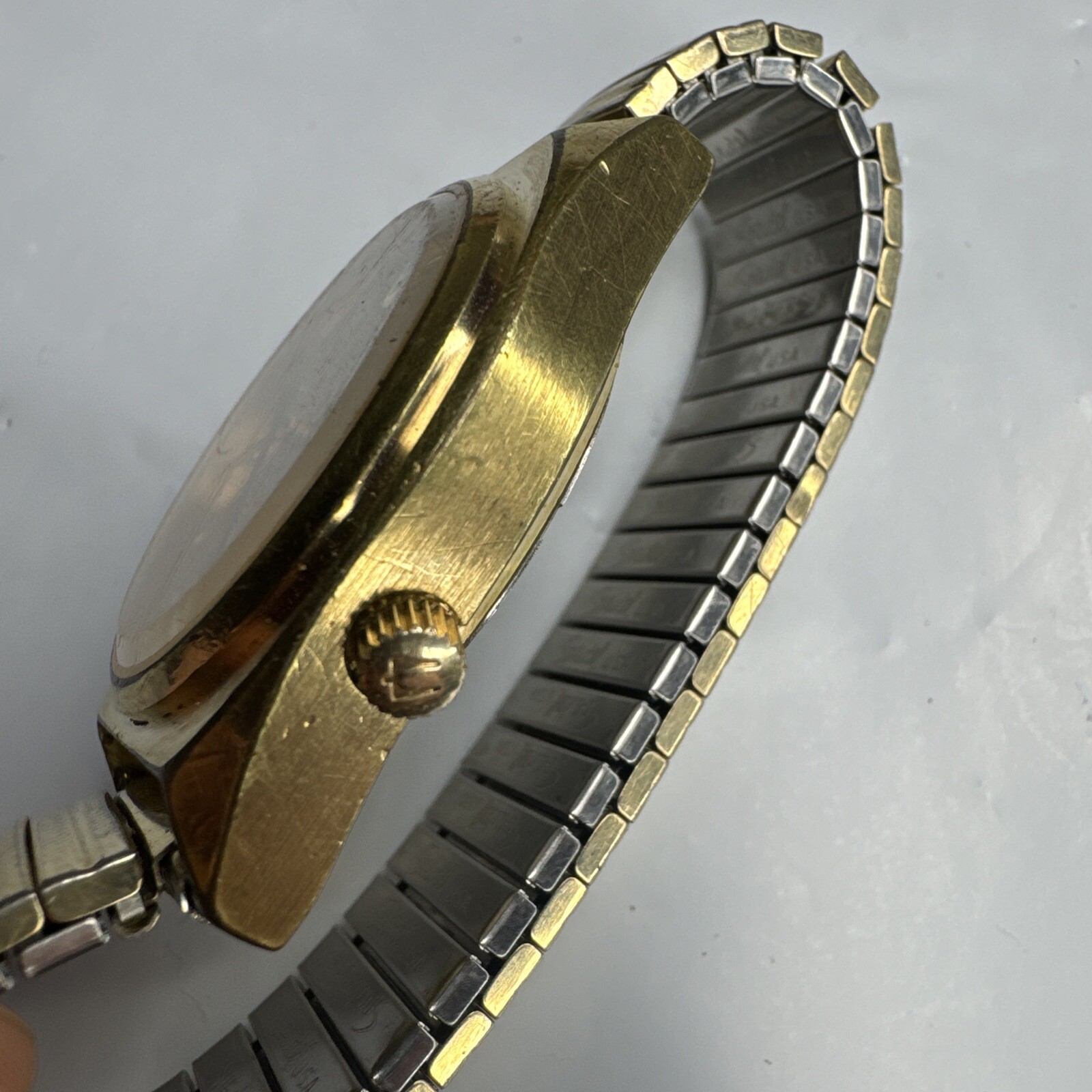 14k gold filled Bulova accutron men’s watch pyramid dial, it runs just fine but the crown is messed up and pulls out all the way and doesn’t move the day/date so will need some repairs to be fully operable