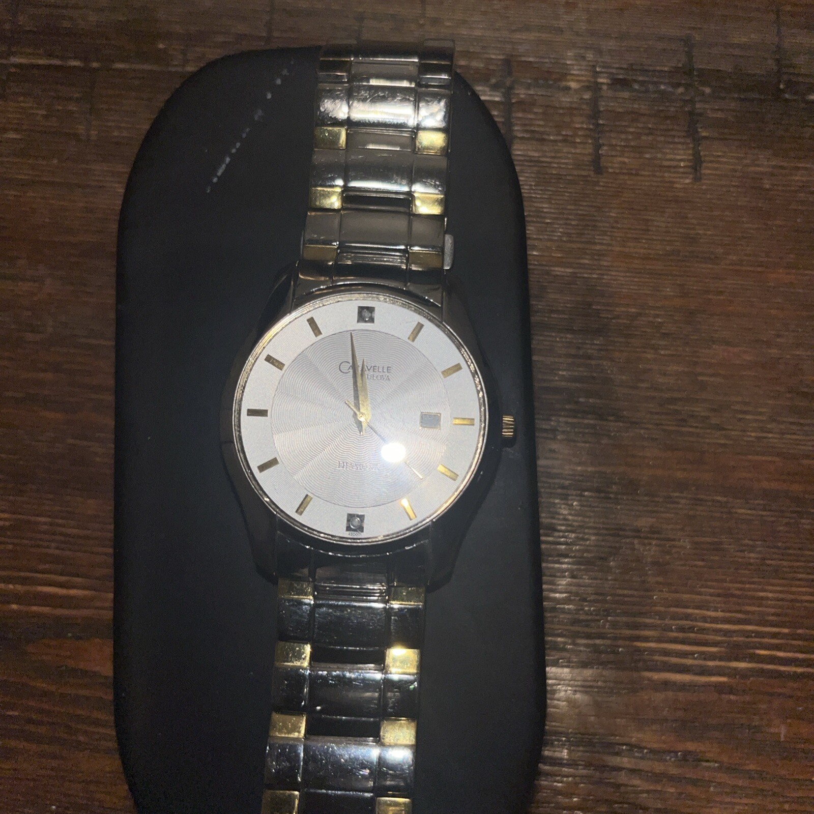 This Caravelle by Bulova watch is a stunning blend of elegance and functionality. The silver and gold design gives it a luxurious yet versatile look, perfect for both formal events and everyday wear. The quartz movement ensures accuracy, while features like the date indicator and chronograph add practicality. The stainless steel band is comfortable and secure, and the 50m water resistance makes it durable. Though it may need servicing, its stylish design and premium feel make it a great choice for anyone looking for a sophisticated timepiece.