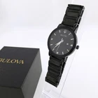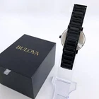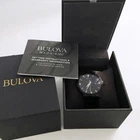 Bulova Futuro Modern 98D144 Black Watch Stainless Steel Men's Wristwatch 42mm This bulova futuro modern black stainless steel with three diamonds on black dial, three-hand date feature, metalized edge-to-edge curved crystal, screw-back case, black IP stainless steel bracelet with deployment closure. Model :98D144 Dial Color:White/ Black Case Width (mm): 42 Lug Width (mm): 22 Crystal: Metalized Domed Mineral Crystal Water-Resistance: 0030M Strap Type: Bracelet; Stainless Steel Case Material: Black; Stainless Steel Additional Functions: 3 Hand; Calenda Quartz: A movement powered by a battery. The quartz crystal regulates the time achieving accuracy to 15 seconds a month. Comes With: Gift box for better storage and portability. Transportation: The item will be shipped within 24 hours. Contact: If you have any questions, feel free to contact me at any time I will reply to you as soon as possible.