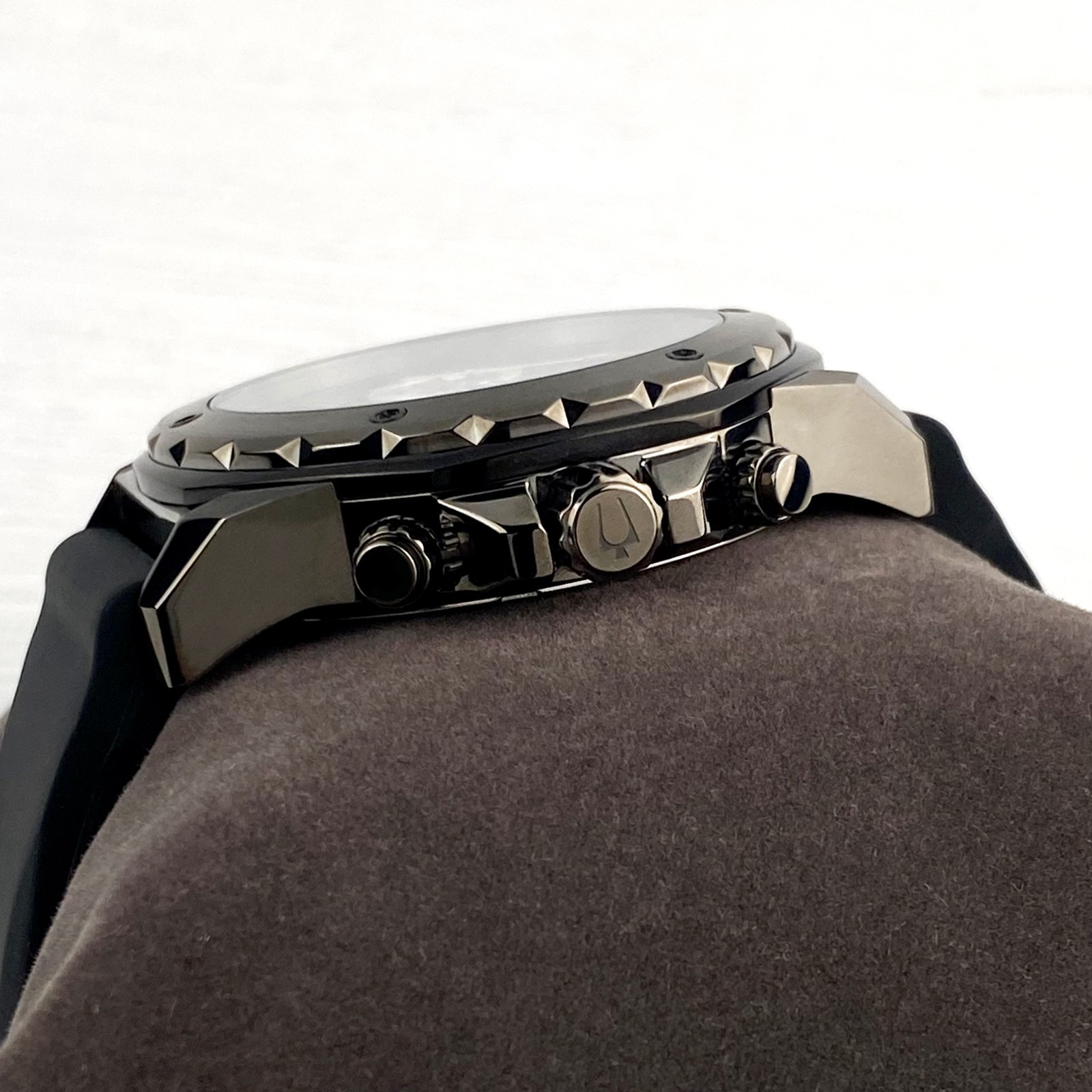 Bulova Marine Star 98B259 Quartz Black Dial Black Rubber Strap Men's Watch Model: 98B259 Dial:Black Case size: 44mm, Movement: Quartz Approx. Band size (in): Adjustable Box/Papers: Yes Movement: High Performance Quartz ype: Analog. Case Shape: Round. Case Width: 44 mm. Case Material: Stainless Steel. Case Color: silver Strap Material: Silicon Strap Color: Black Shipping information Items are usually shipped within 1 business day and arrive within 3-5 business days Usually the item will be shipped on the day of payment (weekend orders will be shipped on Monday) If an item you purchased was shipped in error, please contact us first! We will do our best to solve the problem for you, the customer! We will strive to maintain a high level of satisfaction! If your item is damaged or malfunctioning, we will provide a free return.