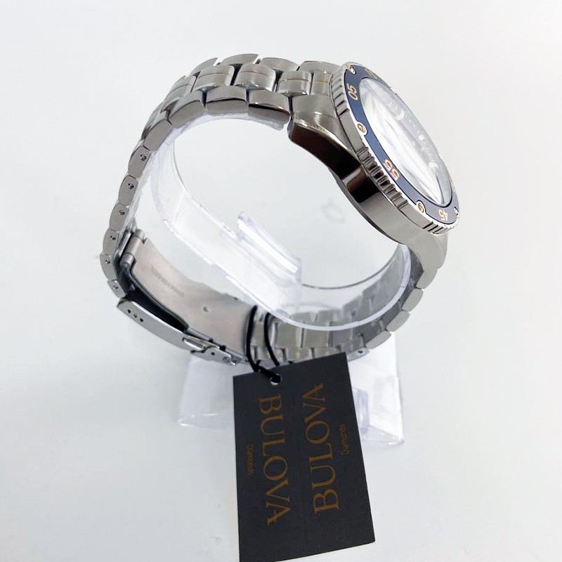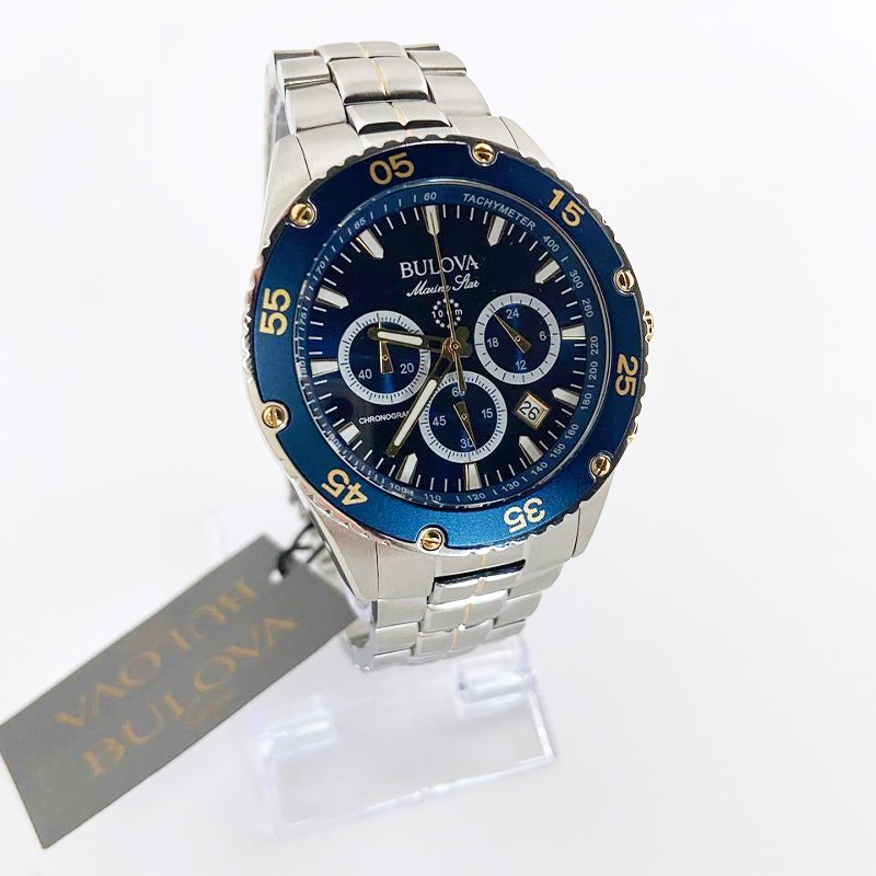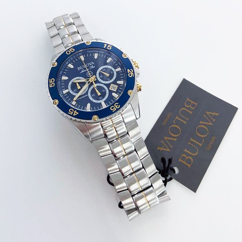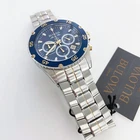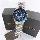 Bulova Marine Star Men's Blue Dial Quartz 98B400 Chronograph Quartz Watch 41.5mm From the Marine Star Collection. Six hand calendar chronograph in stainless steel with black grey dial flat mineral glass, screw-back case, and fold-over closure with pushers, safety bar and extender. Watch Case Model: 98B400 Movement: Quartz Case size: 41.5mm Case thickness: 12mm Case Material: Stainless Steel Watch Strap Band Color: Silver Material: Stainless Steel Dial Dial Color: Blue Crystal: Mineral Bezel: Fixed Luminous: Hands & Hour Markers Functions: Hour, Minute & Second Bracelet Material: Stainless Steel Bracelet Width: 20mm Clasp Type: Buckle Water Resistant: 30m ( 100 ft ) Features Water resistance: 100 meters/330 feet One shell, one circle, two piece set, with a sense of layering Imported solid stainless steel strap with mirror polished and brushed effect; Two-Tone Gold Stainless Steel with Fold Over Clasp with Push Buttons with to match the hand shape. Fine polished copper needle, filled with super imported night light, can display time both day and night The multifunctional quartz movement imported from Japan, paired with high-power battery, has a normal lifespan of 48 months, and the calendar color has a noticeable effect Comes with: Gift box for better storage and portability. Transportation: The item will be shipped within 24 hours. Contact: If you have any questions, feel free to contact me at any time I will reply to you as soon as possible.