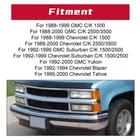 Description 1x Front Bumper Face Bar Chrome With holes For Impact Strip And Pad; Without Air Intake Holes 1x Front Bumper Molding Impact Strip Plastic 1x Front Lower Valance Air Deflector Primed Without Tow Hook Holes and Sport Level Trim Feature Condition: 100% Brand New Color: Chrome Front Bumper +Black/Chrome Trim + Black Lower Air Deflector Quantity sold: Set of 3 Material: Steel+Plastic Aftermarket Replace Number For: 15574111, GM1002802, 15574113, GM1057127, 15569430, GM1090105 No installation instructions (Reference video available) Size: Thickness 1.5mm Fits for 1988-1999 GMC C/K 1500 1988-2000 GMC C/K 2500/3500 1988-1999 Chevrolet C/K 1500 1988-2000 Chevrolet C/K 2500/3500 1992-1999 GMC Suburban C/K 1500/2500 1992-1999 Chevrolet Suburban C/K 1500/2500 1992-2000 GMC Yukon 1992-1994 Chevrolet Blazer 1995-2000 Chevrolet Tahoe Package Include 1x Front Bumper Face Bar Chrome With holes For Impact Strip And Pad; Without Air Intake Holes 1x Front Bumper Molding Impact Strip Plastic 1x Front Lower Valance Air Deflector Primed Without Tow Hook Holes and Sport Level Trim