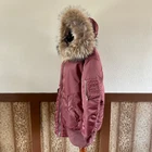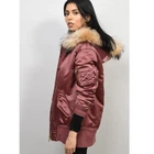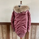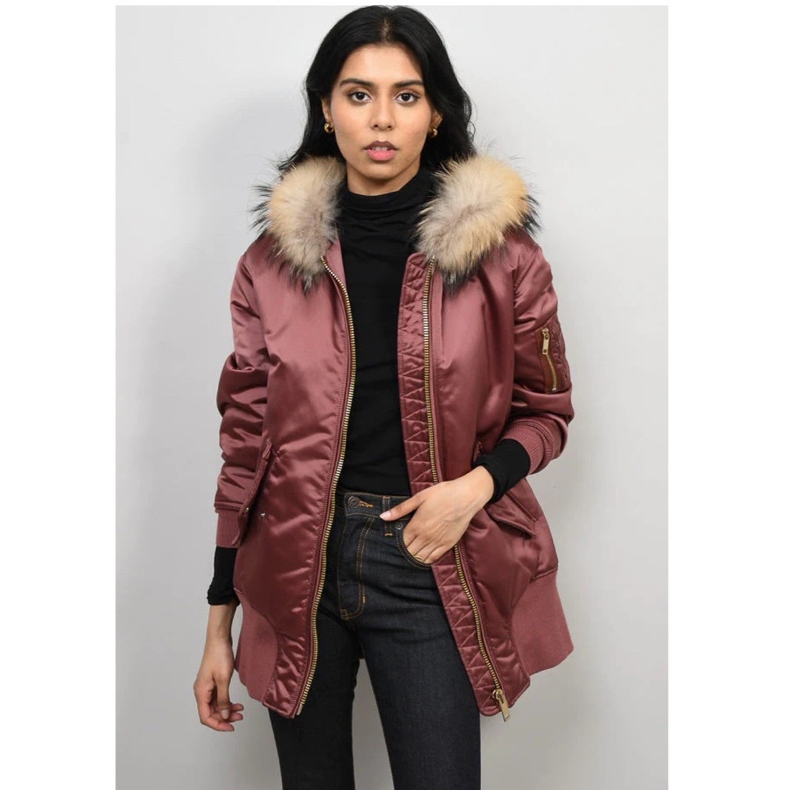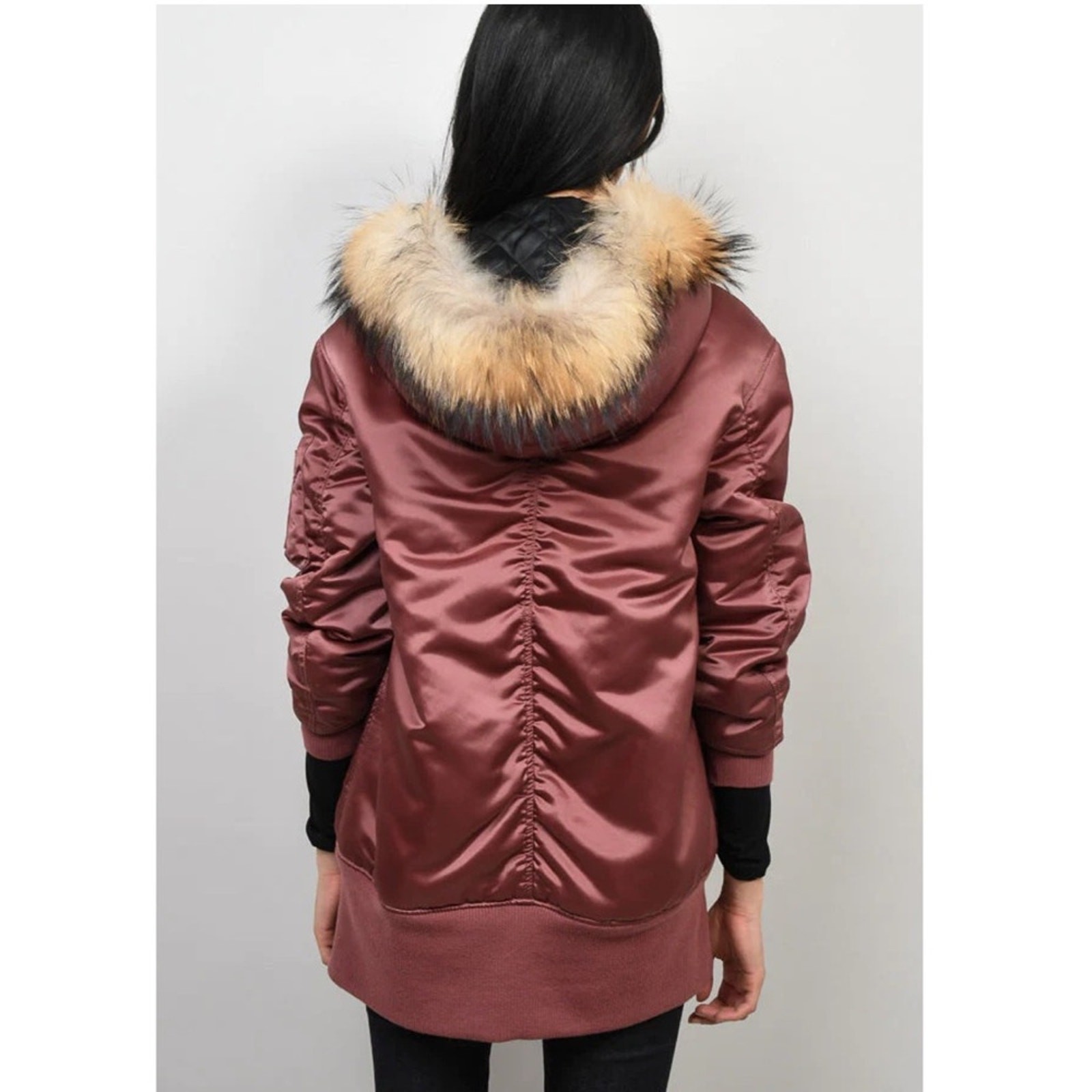 Burberry Long-Line Hooded Bomber Jacket with Fur Trim Size Medium - Antique Rose (color is between a muted red and soft brown IMO) EXCELLENT condition: absolutely no flaws other than a hole in the inside name brand tag as pictured Retailed $1,395 A longer-line satin bomber jacket featuring a raccoon fur-trimmed hood. The laid-back design is finished with rib-knitted trims to add further insulation. The zip pocket at the sleeve is inspired by the detailing on classic flying jackets. Tonal top stitching Front flap pockets Full zip closure Outer: 100% polyamide Hood trim: 100% real raccoon fur Cuff and hem: 86% Merino wool, 12% polyamide, 2% elastane Lining: 70% acetate, 30% cupro Filling: 100% polyester Specialist dry clean Approx. 23" armpit to armpit and 32" center back to bottom of hem Burberry Longline Bomber Jacket with Raccoon Trim Hood in Antique Rose Size Medium