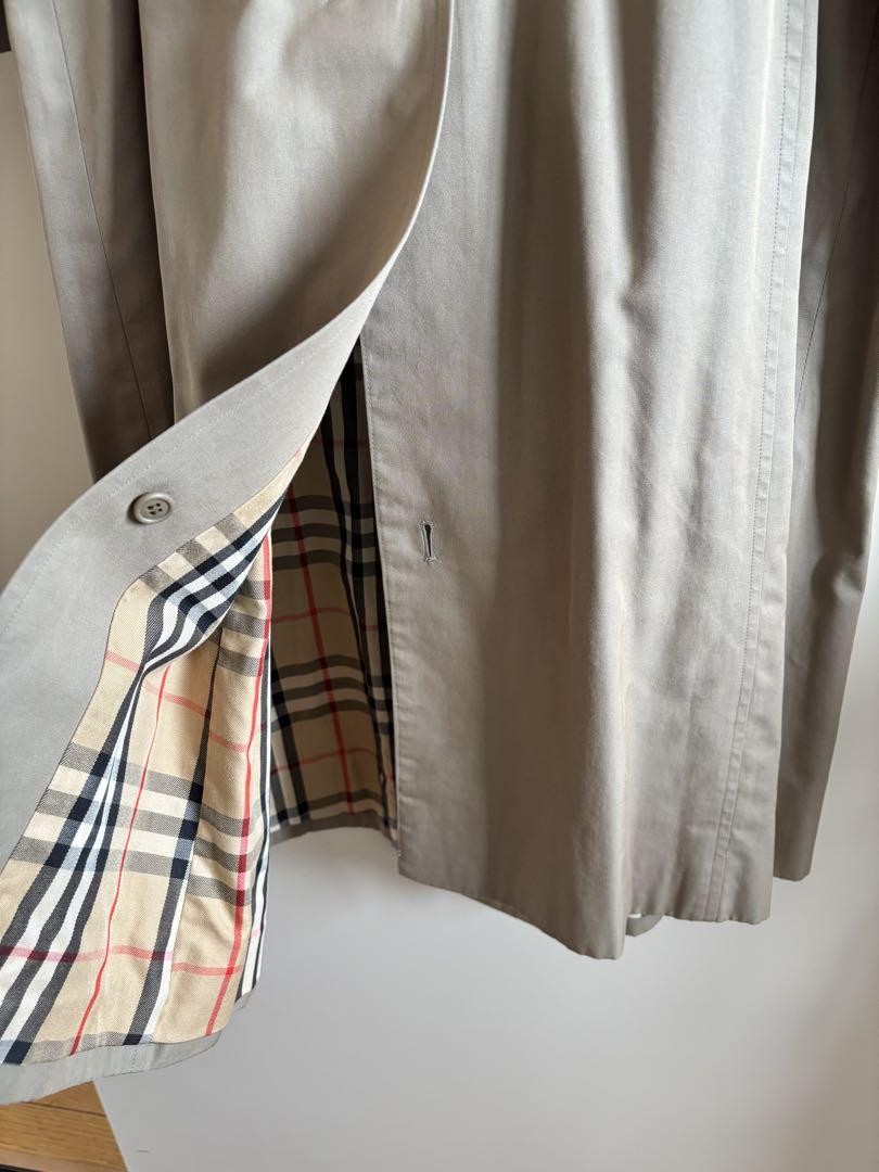 Burberry Beige Trench Coat No Belt Key Features Elevate your wardrobe with this stylish beige double-breasted trench coat by Burberry's. Featuring a classic check-patterned lining and a sleek, beltless design, this timeless piece offers sophisticated elegance. Made from high-quality materials, it measures approximately 18.5 inches (47 cm) in width, 3.9 inches (10 cm) across the shoulders, with 21.3 inches (54 cm) sleeves and a length of 43.7 inches (111 cm). Lightly used, purchased from a vintage shop, with only one wear. Please note a small stain on the back. Stored in a smoke-free home. Perfect for adding a touch of luxury to any outfit. Item Specifics: Brand: Burberry's Color: Beige Style: Trench Coat Features: Double-Breasted Design: Check Pattern Lining Size: Width 47cm (Please Convert cm to inches), Shoulder 10cm, Sleeve 54cm, Length Specifications Brand Burberry Country Japan Product Description Item Title Burberry Beige Trench Coat No Belt Payment Supports managed payments Please pay within 5 days after auction is finished. About Us We are located in Japan. It's our pleasure to make you happy by proposing our recommend item. If you have any questions or request about items, please feel free to ask us. International Buyers - Please Note: -Import duties, taxes, and charges are not included in the item price or shipping charges. These charges are the buyer's responsibility. -Please check with your country's customs office to determine what these additional costs will be prior to bidding/buying. -These charges are normally collected by the delivering freight (shipping) company or when you pick the item up - do not confuse them for additional shipping charges. -We do not mark merchandise values below value or mark items as - gifts - The US and International government regulations prohibit such behavior. Thank you for your understanding.
