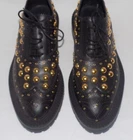 24 - If you are interested in having us sell your nice designer items on eBay, please contact us for information! CONSIGN WITH US NOW You are Bidding on a Gorgeous Pair of Burberry Studded Brogue Leather Platform Wingtip Oxford Dress Shoes Style Name - "Dearborn" Size 39 EUR / 9 US / 6 UK Color is Black Leather Uppers Embellished w/ Large Gold Tone Round Dome-Shaped Studs & Tiny Gold Tone Eyelets Throughout Oxford / Derby Style Tonal Lace-Up Self-Tie Closure Wingtip Almond Toe Perforated Brogue Detail & Serrated Edges Platform Design Low-Height Block Heel Leather Lining Chunky Lug-Style Treaded Rubber Sole Made in Italy Insoles Measures Approximately 10" in Length Heel Measures Approximately 1.25" in Height Sorry, No Box or Dust Bag In Excellent Pre-Owned Condition Check Out My Other Items! We combine shipping! Import duties, taxes and charges are not included in the item price or shipping charges. These charges are the buyer’s responsibility. Please check with your country’s customs office to determine what these additional costs will be prior to bidding/buying. These charges are normally collected by the delivering freight (shipping) company or when you pick the item up – do not confuse them for additional shipping charges. We do not mark merchandise values below value or mark items as gifts’ - US and International government regulations prohibit such behavior. We would like to sell your items for you! We specialize in higher end designers and are always looking for men's and women's clothing and accessories. Why take your fine items to a resale store when you can have access to million’s of people that shop on eBay? Why donate when you can get cash back? If you are interested, please e-mail us and we will forward the information to you. Look at our feedback. We are honest sellers and have sold thousands of designer items. PLEASE EMAIL US WITH ANY QUESTIONS WE RESERVE THE RIGHT TO RELIST ANY ITEM AFTER 2 DAYS IF THERE IS NO COMMUNICATION BETWEEN BUYER AND SELLER OR IF YOUR FEEDBACK IS 5 OR LESS. WE HAVE HAD MANY NON PAYERS AND WE REPORT ALL TO EBAY. WE SHIP MONDAY THROUGH FRIDAY AND ALL OF OUR ITEMS SHIP THE DAY AFTER WE RECEIVE PAYMENT UNLESS THE SHIPPING DAY FALLS ON A WEEKEND OR A HOLIDAY OUR SHIPMENTS ARE MAILED USING USPS PRIORITY MAIL UNLESS A DIFFERENT CARRIER IS SPECIFIED IN THE LISTING. WHEN WE ARE PAYING FOR SHIPPING WE RESERVE THE RIGHT TO SHIP WITH ANOTHER CARRIER. SIGNATURE CONFIRMATION WILL BE REQUIRED ON ALL SHIPMENTS OF $300.00 OR HIGHER. INTERNATIONAL SHIPMENTS WILL BE SHIPPED ON THE SAME SCHEDULE AS DOMESTIC SHIPMENTS. WE WILL ONLY SHIP INTERNATIONAL SHIPMENTS PRIORITY MAIL OR EXPRESS MAIL VIA USPS. WE WILL NOT FALSIFY CUSTOMS FORMS SO PLEASE DO NOT ASK US TO MARK AS A GIFT OR LOWER THE VALUE. WE PLACE THE VALUE ON THE CUSTOMS FORM AT THE PRICE THE ITEMS WERE PURCHASED FOR. WE WILL COMBINE SHIPPING FOR MULTIPLE PURCHASES ON OUR LISTINGS AS LONG AS THEY ARE PAID IN THE SAME TRANSACTION. WE WILL ONLY SHIP TO THE ADDRESS EBAY PROVIDES AT THE TIME OF THE PAYMENT TRANSACTION. PLEASE MAKE SURE THE ADDRESS YOU HAVE ON FILE WITH EBAY IS ACCURATE PRIOR TO PAYMENT. OUR ITEMS MAY HAVE CUT AND/OR MARKED TAGS. THIS IS DONE AT THE RETAIL LEVEL TO PREVENT RETURNS. THANKS FOR BIDDING! 1 Be sure to add us to your favorites list ! SZC627 K a: %%),%%),%_%,%)),%)),