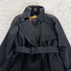 Burberry Black Wool Liner Trench Coat with Nova Check Belt