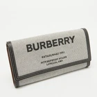 This Burberry wallet is an immaculate balance of sophistication and rational utility. It has been designed using prime quality materials and elevated by a sleek finish. The creation is equipped with ample space for your monetary essentials.Certified by The Luxury Closet - This item has gone through a detailed authentication process overseen by our experts. We offer a lifetime guarantee of authenticity on all our items. Import duties, taxes and charges are not included in the item price. These charges are the buyers responsibility. Please check with your country’s customs office to determine what these additional cost will be prior to buying. Our eBay Store About Us Contact Us Add to Favorite Sellers Burberry Black/White Canvas and Leather Halton Continental Wallet $653.4 This Burberry wallet is an immaculate balance of sophistication and rational utility. It has been designed using prime quality materials and elevated by a sleek finish. The creation is equipped with ample space for your monetary essentials. Product Details Brand Color Black Dimensions Height: 9.5 cm, Width: 2.5 cm, Length: 19.5 cm Material Canvas, Leather Size Outsole Width Outsole Length Heel Height Includes Original Dustbag, Info Booklet Certified by The Luxury Closet This item has gone through a detailed authentication process overseen by our experts. We offer a lifetime guarantee of authenticity on all our items. How We Check The in-house team of experts at The Luxury Closet is highly trained to verify the authenticity and the condition of the luxury products. They ensure that only 100% authentic items are put on sale.The evaluation process is unique with its own mix of assessment criteria and differs according to the category. Each item is evaluated based on the following combination of hallmarks, hardware, stitching, symmetry, material, craftsmanship, stamping, codes, hologram stickers, and packaging. Our authenticators also check if the items have been modified or amended (e.g., aftermarket diamonds, replaced batteries, repaired bags, etc.) International Buyers Import duties, taxes and charges are not included in the item price. These charges are the buyers responsibility. Please check with your country’s customs office to determine what these additional cost will be prior to buying.