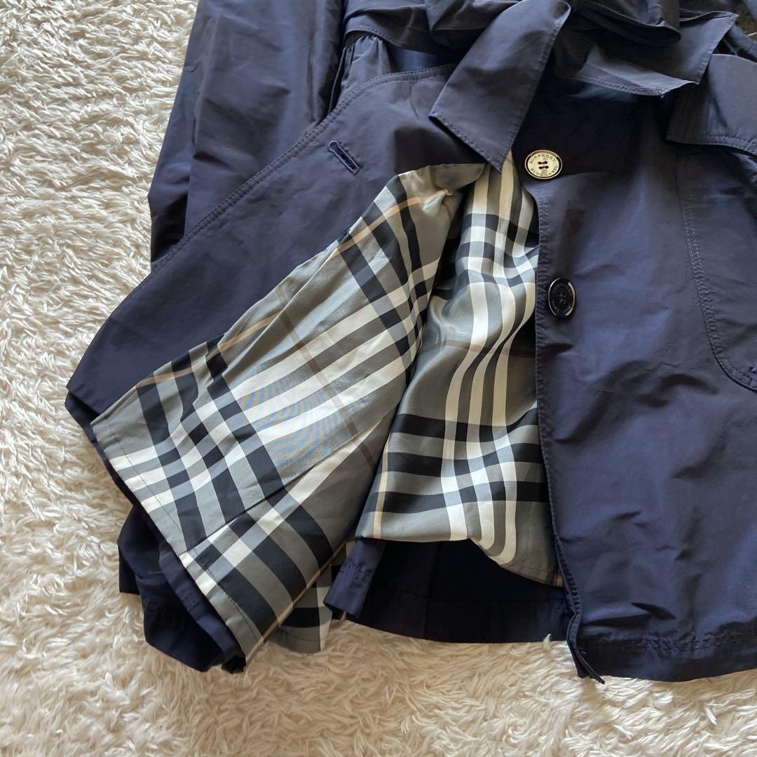Burberry Blue Label Spring Coat Belt Navy Nova Check Lining Key Features Nako Burberry Trench Coat - Navy This is a stylish, lightweight Burberry trench coat with a belt, perfect for spring. Made from a nylon-like fabric, it features two pockets, a Nova check lining, and a long length. Size approximately 38 (M), with shoulder width 13 inches, sleeve length 24 inches, and total length 32 inches. Condition is excellent with no noticeable damage, ready for continued use. Item Specifics: Brand: Burberry Type: Trench Coat Model/Name: Nako Burberry Trench Color: Navy Material: Polyester, Cotton Size: Approx. 38 (M) Length: 81 cm (31.9 inches) Sleeve Length: 61 cm (24 inches) Shoulder Width: 33 cm (13 inches) Waist: 38 cm (15 inches) Hip: 55 cm (21.7 inches) Condition: Excellent, no Specifications Brand Burberry Blue Label Country Japan Product Description Item Title Burberry Blue Label Spring Coat Belt Navy Nova Check Lining Payment Supports managed payments Please pay within 5 days after auction is finished. About Us We are located in Japan. It's our pleasure to make you happy by proposing our recommend item. If you have any questions or request about items, please feel free to ask us. International Buyers - Please Note: -Import duties, taxes, and charges are not included in the item price or shipping charges. These charges are the buyer's responsibility. -Please check with your country's customs office to determine what these additional costs will be prior to bidding/buying. -These charges are normally collected by the delivering freight (shipping) company or when you pick the item up - do not confuse them for additional shipping charges. -We do not mark merchandise values below value or mark items as - gifts - The US and International government regulations prohibit such behavior. Thank you for your understanding.