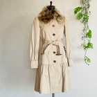 BURBERRY BLUE LABEL trench coat size S color Beige with Belt Fur Used Excellent+ Description Brand: Burberry London Blue Label Item: Rare Camel Trench Coat with Nova Check Lining and Detachable Fox Fur Collar Color: Camel Size: 36 (S) Measurements: - Shoulder Width: 35 cm (13.78 in) - Bust Width: 44 cm (17.32 in) - Sleeve Length: 60 cm (23.62 in) - Waist Width: 37 cm (14.57 in) - Frill Length: 32 cm (12.60 in) - Total Length: 92 cm (36.22 in) Material: - Outer: 100% Cotton - Lining: Polyester, Cupro - Collar Fur: Fox (detachable) Condition: Pre-owned, in very good condition. Minor stain and small scratch near the lower right back hem (see images 4, 19, 20). Otherwise, well-maintained. Features: Elegant and rare design with Nova Check lining, detachable fox fur collar, and pockets. Suitable for spring, autumn, and winter seasons. Accessories: None All of Items Will be Shipped From Japan. Please check with the image. About the condition Damages such as stains, scuffs, and scratches are listed only if they are noticeable. Please understand that this is a used item, so there may be some inconspicuous scuffs or signs of use even if they are not listed. Please note that there may be unnoticeable scuffs and scratches on the item even if they are not listed. Please check the images for details of the condition. Note: This is a used item. We have tried to describe the condition of the item with detailed pictures and text as much as possible, but please understand that there may be some things that we have overlooked because it is a used item. Please note that measurements are taken by our company, so please understand that there may be some errors. If there is no special description about the accessories, only this item will be included. Colors may look different from the actual item depending on your monitor and shooting environment. Payment Please pay within 7 days of first purchase. ebay payments We can not separate invoice. Please understand. Shipping&Handling ■Speedy Shipping Shipped by DHL, FedEx, or Japan Post with tracking number. *If your location is designated as remote, additional shipping charges may apply. (Some areas such as Australia, Canada, Chile, and remote areas of the U.S.) I will pack it carefully. ■Economy Shipping (Japan Post) Economy Airmail 15-40 days without tracking Additional shipping fees may apply for countries/areas where delivery by Japan Post is not available. Handling Time Please check the categories of Shipping and payments. International Buyers - Please Note: Import duties, taxes, and charges are not included in the item price or shipping cost. These charges are the buyer's responsibility. Please check with your country's customs office to determine what these additional costs will be prior to bidding or buying. If you have any questions about products, shipping, etc., please do not hesitate to contact us by message. Thank you for your understanding.