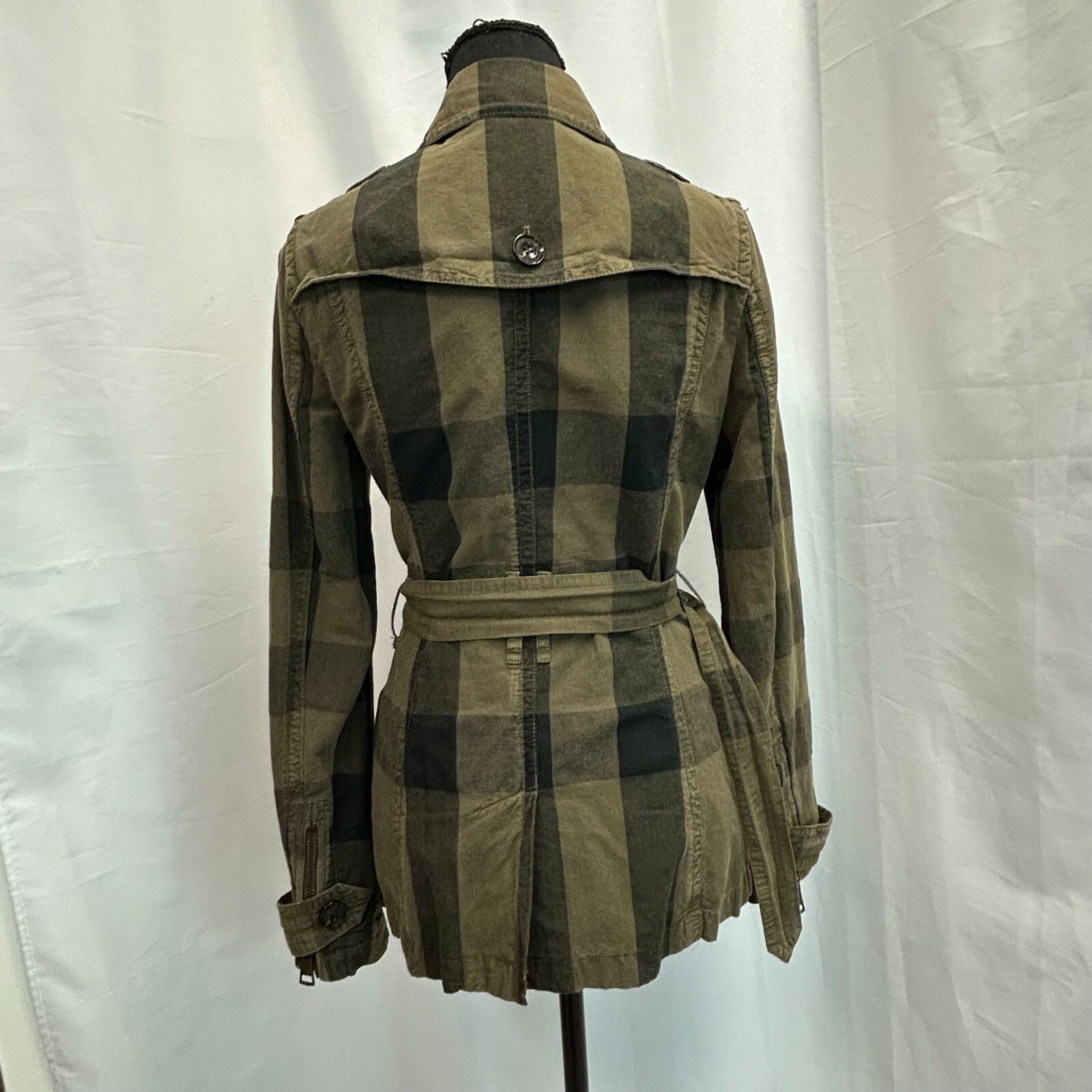 Burberry Brit Check Trench Coat Womens 2 Belted Double Breast Short Cotton Green Brand: Burberry Color: Green Gender: Women Pattern: Check Size: 2 Style: Trench Coat Double Breasted Long Sleeve Collared neckline Belted Machine wash Approx. Measurements: Lay Flat on table 15 Inches Chest, 15.5 Inches Waist and 28 Inches Length. Pre-owned. Excellent condition. Excellent condition no flaws -please ask any questions before purchasing -Hidden identification to prevent switching of the product -all sales are final. No returns SKU Number: 2220251b3/4epufcs ALL ACCEPTED RETURNS MUST BE SHIPPED BACK TO: 85 Sunset Way SE Calgary,AB T2X3C1 Canada
