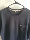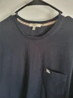 The Vtg Burberry London Pocket T Shirt for men in size Large is a vintage piece made of cotton with a solid black color and a logo accent. This short sleeve t-shirt features a crew neck and a regular fit, perfect for a casual and classic look. The addition of pockets adds a practical touch to this wardrobe staple from the iconic Burberry brand, making it a stylish and versatile choice for everyday wear. Made in Italy, this t-shirt exudes a timeless charm reminiscent of 80s and 90s fashion trends. Note: gently used, normal color fade. No tears , no stains