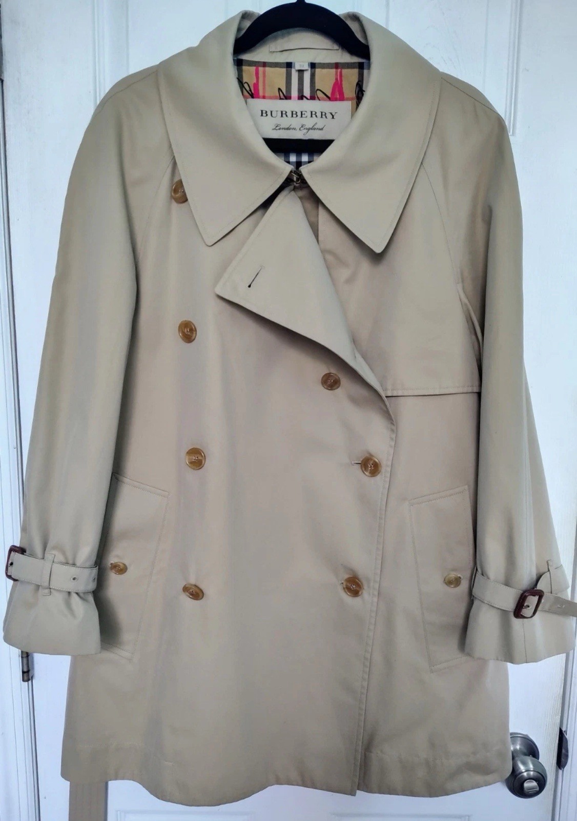 Burberry Tan Trench Coat, a staple piece from the 2020 collection. Stunning quality coat. 100% Showerproof Gabardine Cotton. Everything you could expect from a Burberry trench; 'Burberry' embossed buttons Check pattern under the exaggerated collar 2 external pockets Storm Flap Single Vent to the back Wrist belts and shoulder epaulettes. Graffiti nova check lining. CONDITION: Like new. Worn once. SIZE & MEASUREMENTS: Size USA 8 IT 42 oversized. Would fit larger sizes. Please see below. Actual Measurements (taken when flat): 23" Bust 24.5 Waist 33.5"' Length 15" Pit to Cuff Comes with Burberry cover bag.