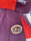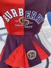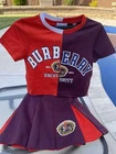BURBERRY Girls Bold Red Varsity College graphic t-shirt . Description: Burberry Girls Tops.T-Shirts. Color: Bold Red. Burberry Girls Bold Red Varsity College Graphic Cotton T-Shirt. A cotton t-shirt featuring a crew neck, short sleeves, straight hem, and finished with a college-inspired logo print that sits in a mismatched fashion. Cotton 100% Gabrielle pleated shirt from the Cedar Varsity line . The skirt is deep plum or maroon with red under pleats . The skirt has a Burberry university emblem on the left bottom that matches the one located on the front of the shirt . The skirt is made of good quality material that has a small amount of stretch . Such a cute outfit that can easily be rocked out into a more trendy outfit if you don’t like strictly pretty. The colors look amazing together ! And with a little imagination this set could take your girl into the winter as well. This piece’s are a size 3y