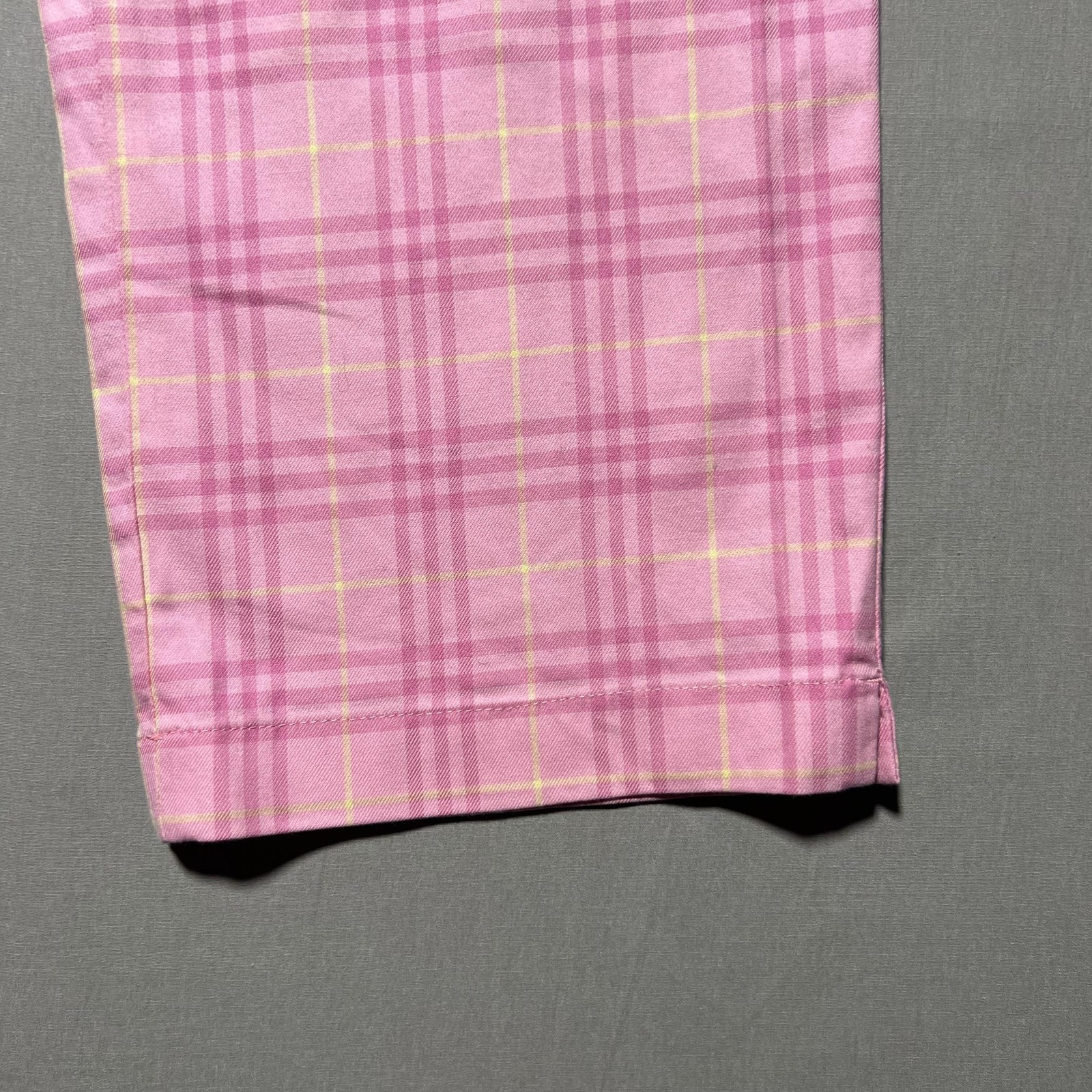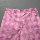 Burberry Golf Pants Womens 4 Pink Plaid Straight Leg Stretch Preppy Spain Luxe Condition: Good pre-owned condition with no holes or stains noted. Light overall wear, some light creasing from storage. Shell: 97% cotton, 3% elastane for comfortable stretch. Lining: 67% cotton, 33% polyester. Color: Pink plaid with yellow/white accent stripes for a vibrant, preppy look. Features: Flat front, straight leg, belt loops, zip fly with button closure, single back pocket, embroidered Burberry patch on rear, classic Burberry Golf interior label. Size on tag: UK 8, USA 4 (Womens sizing) Made in Spain Machine wash cold, do not tumble dry, iron low heat Perfect for golf or everyday preppy style—stretch fabric for comfort and great movement!