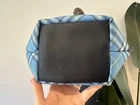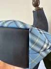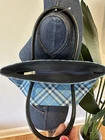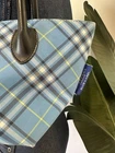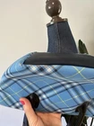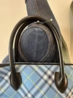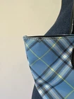 Up for sale, a super cute Burberry London Blue Label mini tote in beautiful blue plaid - with black, white and yellow colors. Black leather handles, inside has one small pocket and zippered pocket. Zipper works well. A clean, crisp piece! Measures approximately 11.5in x 6in x 4.5 inches. Give this a simple, light cleaning and its "new"! Nonsmoking and pet free home. Send questions and look at all photos, no returns. Check out my other listings!