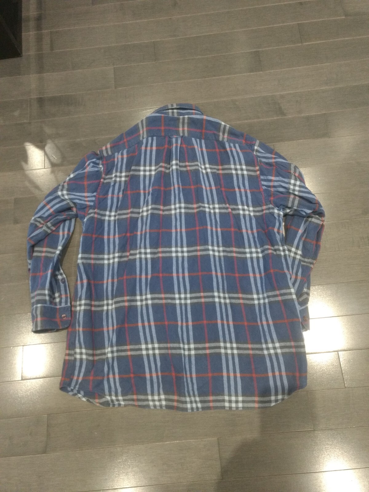 No rips or stains, blue is faded from wash and wear. Inside tag was removed.