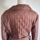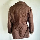 Burberry London Chocolate Brown Quilted Belted Jacket Nova Check Size Large Classic British luxury meets timeless functionality in this Burberry quilted jacket. Crafted in a rich chocolate brown with diamond quilting, this belted button-up style cinches the waist for a flattering fit. Signature Nova Check lining peeks through at the cuffs for an iconic touch. Adjustable waist belt, 2 front pockets, signature nova check lining. Perfect for Transitional weather, elevated everyday style, and layering over casual or workwear looks. Bust: 21” Length: 28” Sleeve: 33” Condition: Minor wear to the belt buckle. Light signs of gentle use, but overall very good pre owned condition. Keywords: Burberry jacket, quilted coat, Nova Check, chocolate brown outerwear, belted jacket, British fashion, trench alternative, fall fashion, winter layering, designer coat, equestrian, heritage 81025-13518