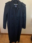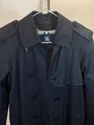 This Burberry London trench coat is a timeless classic—sleek black, perfect mid-size fit, and that iconic collared design. The length is just right for a polished look, and while it shows some wear (scratches, wrinkles), it still carries that luxurious Burberry charm. Great for layering or dressing up, and the used condition makes it a steal for the price!