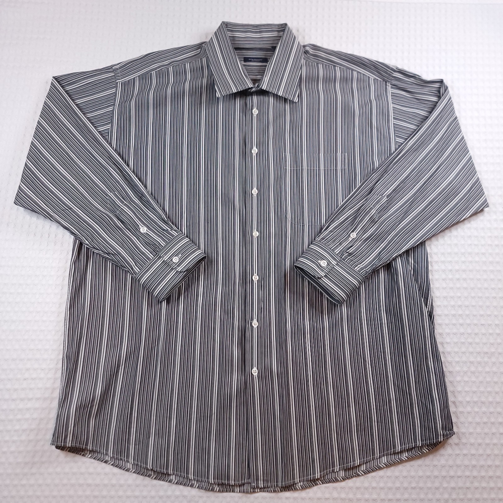 ***BUNDLE & SAVE ON SHIPPING*** SIMPLY ADD ALL WANTED ITEMS TO CART BEFORE YOU CHECKOUT & PAY ONLY $2.99 FOR EACH ADDITIONAL ITEM PURCHASED 🤩 **************************************************************************************************** Burberry London Button-Up Long Sleeve Dress Shirt | Pocket on Left Chest Single-Button Barrel Cuffs | Black & White Stripe | Size 18.5-37 | 100% Cotton ~ Excellent, Like New Condition ~ 📌 We highly recommend comparing measurements in our photos provided to one of your favorite garments to ensure your personal desired fit before purchasing. 👀 📸 Our photos with measurements are taken with the garment lying flat. *Color on some photos may look slightly different due to lighting and camera flash* 👈 Team Birdie Notes: ~ Our items are carefully examined, measured, photographed, and stored in a smoke-free, pet-free environment. ~ We do our very best to list items with as accurate measurements and descriptions as possible. Because original tag sizes aren't always correct with pre-owned clothing, we ask that you lay flat a favorite garment of yours, measure the same areas shown in the photos prov ided in this listing, and then compare the measurements to ensure your personal desired fit before purchasing. ~ Shirts will show measurements from the base of the collar to the bottom of the garment, across the chest, starting and ending on the underarm/pit area. ~ Long sleeves are measured from the center base of the collar to the shoulder hem, then to the end of the cuff with a flexible ruler. ~ Garment bottoms will show measurements of the total length, inseam, leg width, rise, and waist. ~ In the event you need to return an item, we offer a 30-day return policy on unused, unworn items unless otherwise specified in the posted listing return policy. For the return to be completed, all garments returned must be in the original condition shipped to you. Any "New with Tags" items must have a ll tags attached in the same place and be in the same condition as shown in the original listing. We must receive the return in the time allotted under eBay's Return Policy. ~ We ship orders within 1 business day of payments with tracking provided to you. If you pay on a Friday, Saturday, or Sunday, the order will be shipped the following Monday, which is the next business day. ~ We offer a discount on shipping for additional items ordered. Items purchased by offers are excluded from a shipping discount. Just add all your items into the cart and pay just $2.99 for each additional item!! T he shipping discount will be automatically adjusted at checkout. ~ 100% authenticity guaranteed. Thank you, and have a great day! CLICK BELOW FOR OUR STORE!!