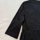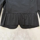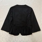 Absolutely love this Burberry jacket! The sleek no-collar design and silver buttons give it a timeless, elegant look. The peplum cut is flattering, and the fabric feels luxurious yet comfortable. Fits true to size, and the black color makes it super versatile—dresses up any outfit effortlessly. Great condition, no flaws at all. A must-have for any wardrobe!