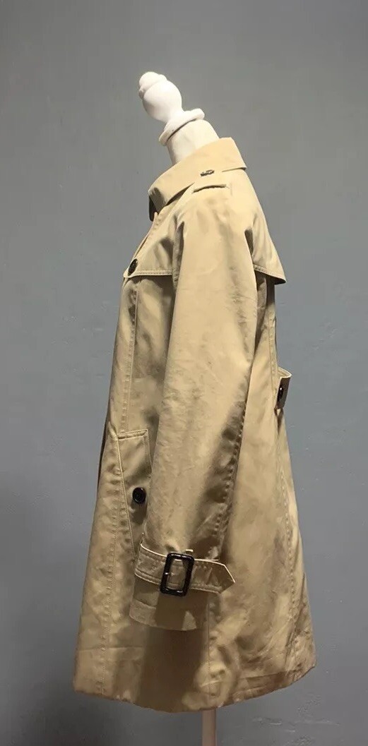 Vintage Authentic Burberry London Sz Small 36 Beige Short Trench No Belt Coat. Includes Burberry garment bag. This is an underrated style short trench, gives off a polished flair and urban elegance look. Perfect for your spring wardrobe, for those in-between days when you want to keep it cute and cozy without being weighed down. This beauty is purchased from miu_shop_japan, A+ seller. Measurement: Pit to pit 17”, sleeve length 23”, waist 35”, shoulder length 27”, coat length 30” Materials: Main Fabric: 100% cotton Main Lining: 100% cotton Sleeve Lining: 100% cupro Shipped promptly. 📮 Packed carefully. 📦 Smoke free. Thanks for shopping! 🛍️ 🛍️ 🛍️ 🛒 🛒 🛒 Return item must include all original items undamaged, unused, in re-saleable condition, with all original packaging, etc. We will not offer a full refund if it has been altered/used in any way.