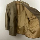 Burberry Men’s Silk Wool Blend Brown Button Down Blazer Size 46 Excellent Preowned Condition. See flaws in last two photos. Smoke-Free. Measurements are approximate and should be used as a guide for fit: Chest: 25” Length: 32” Sleeve Length: 24.5”