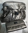100% AUTHENTIC ‼️purse in good condition some of the metallic is lighter in some areas due to being worn color is slightly faded in some areas wallet is in very good condition measures 7 1/2 x 3 1/2 lots of card openings metallic is in very good condition does not show a lot of use metal is dark silver pewter color ssnap shut on wallet/ purse outside compartment has drawstring with elastic on top original dust cover