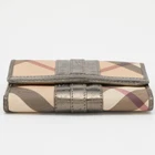 This Burberry wallet is carefully crafted to offer you a luxurious accessory you will cherish. It is marked by high quality and enduring appeal. Invest in it todayCertified by The Luxury Closet - This item has gone through a detailed authentication process overseen by our experts. We offer a lifetime guarantee of authenticity on all our items. Import duties, taxes and charges are not included in the item price. These charges are the buyers responsibility. Please check with your country’s customs office to determine what these additional cost will be prior to buying. Our eBay Store About Us Contact Us Add to Favorite Sellers Burberry Metallic/Beige Nova Check PVC and Patent Leather French Wallet $122.1 This Burberry wallet is carefully crafted to offer you a luxurious accessory you will cherish. It is marked by high quality and enduring appeal. Invest in it today Product Details Brand Color Beige Dimensions Height: 11 cm, Width: 2.5 cm, Length: 14.5 cm Material Leather, PVC Size Outsole Width Outsole Length Heel Height Includes The Luxury Closet Packaging Certified by The Luxury Closet This item has gone through a detailed authentication process overseen by our experts. We offer a lifetime guarantee of authenticity on all our items. How We Check The in-house team of experts at The Luxury Closet is highly trained to verify the authenticity and the condition of the luxury products. They ensure that only 100% authentic items are put on sale.The evaluation process is unique with its own mix of assessment criteria and differs according to the category. Each item is evaluated based on the following combination of hallmarks, hardware, stitching, symmetry, material, craftsmanship, stamping, codes, hologram stickers, and packaging. Our authenticators also check if the items have been modified or amended (e.g., aftermarket diamonds, replaced batteries, repaired bags, etc.) International Buyers Import duties, taxes and charges are not included in the item price. These charges are the buyers responsibility. Please check with your country’s customs office to determine what these additional cost will be prior to buying.