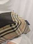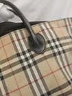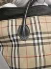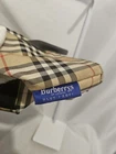 Pre loved , normal wear Burberry blue tag mini tote bag with zipper. Corners are worn and straps have some scuffs and discoloration. Canvas itself is in great condition just needs to be cleaned to remove stains. Please review pictures.