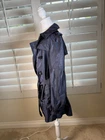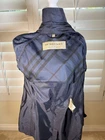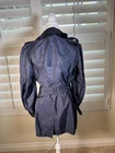 Burberry Short Belted Trench Coat Navy Blue Double Breasted with Smock Arms Waterproof in EXCELLENT condition USA Sz 6. Perfect for travel or work or casual. Light and breathable as a windbreaker or rain jacket. Absolutely stunning on! The smock arms give it a flare and the trench coat design is always classic refer to photos for all the details. The short length is perfect for all your outfits, to dress up or down and never goes out of style. I wore it twice, never in the rain. I bought it for full retail at the Burberry boutique in San Francisco for close to 1K.