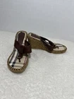 Burberry Nova Check Brown Leather Espadrille Wedge Slides Sandals Women’s 36. Shoes is in used condition but shoes is in excellent condition. Upper leather is in excellent condition and very clean , inside is clean and the soles are in perfect condition. Nice comfortable shoes for casual wear. Condition is pre-owned. Shipped with usps priority mail. Sold as pictures. Thank you! Feel free to message me for any questions. Thank you