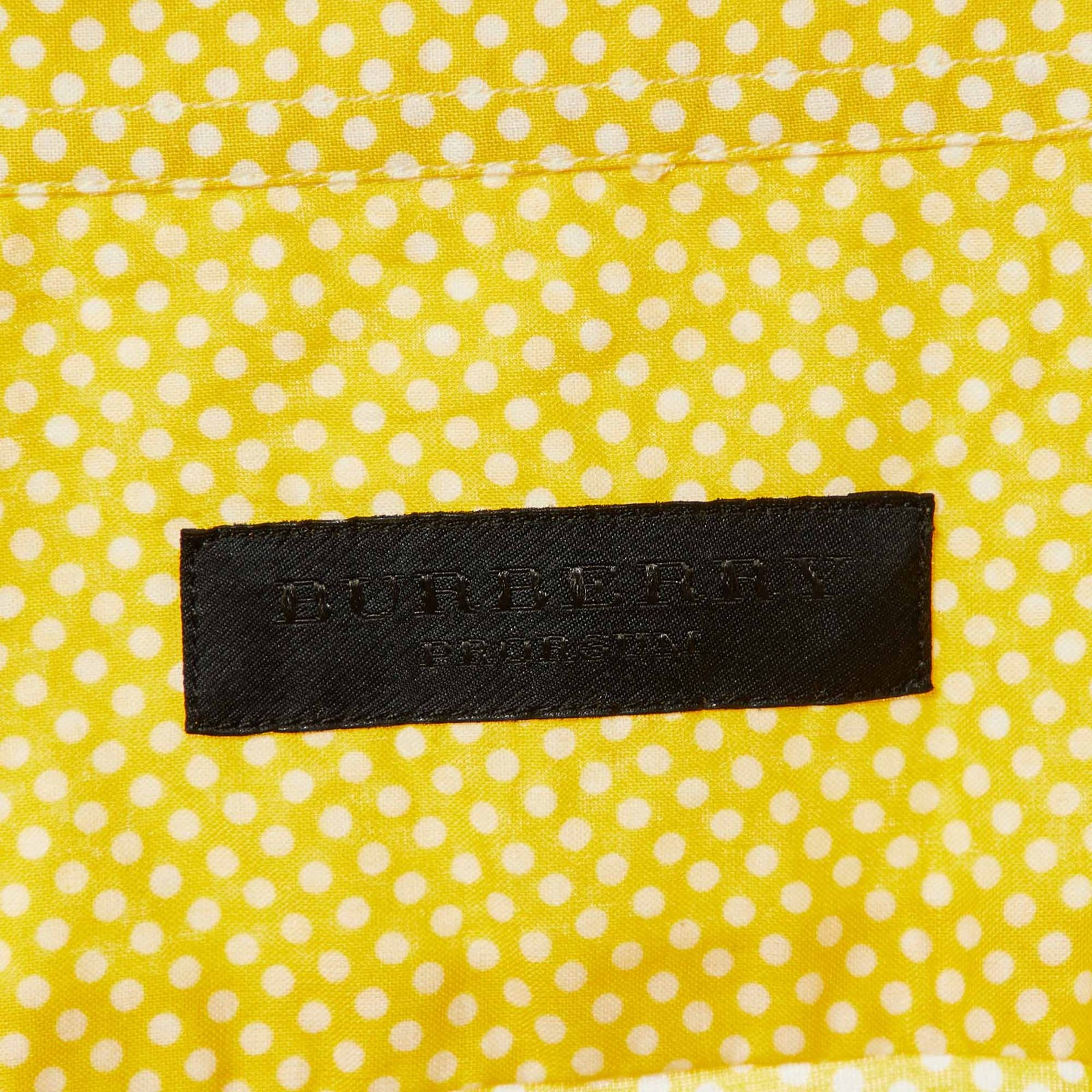 A playful twist on classic tailoring, this Burberry Prorsum shirt features dot prints on vibrant yellow soft cotton. A grand choice for those who appreciate standout patterns.Certified by The Luxury Closet - This item has gone through a detailed authentication process overseen by our experts. We offer a lifetime guarantee of authenticity on all our items. Import duties, taxes and charges are not included in the item price. These charges are the buyers responsibility. Please check with your country’s customs office to determine what these additional cost will be prior to buying. Our eBay Store About Us Contact Us Add to Favorite Sellers Burberry Prorsum Yellow Dot Printed Cotton Button Front Shirt L $228.8 A playful twist on classic tailoring, this Burberry Prorsum shirt features dot prints on vibrant yellow soft cotton. A grand choice for those who appreciate standout patterns. Product Details Brand Color Yellow Dimensions Collar: 18"; Chest: 40" ; Sleeve Length: 25" ; Length: 27.5" Material Cotton Size L Outsole Width Outsole Length Heel Height Includes The Luxury Closet Packaging Certified by The Luxury Closet This item has gone through a detailed authentication process overseen by our experts. We offer a lifetime guarantee of authenticity on all our items. How We Check The in-house team of experts at The Luxury Closet is highly trained to verify the authenticity and the condition of the luxury products. They ensure that only 100% authentic items are put on sale.The evaluation process is unique with its own mix of assessment criteria and differs according to the category. Each item is evaluated based on the following combination of hallmarks, hardware, stitching, symmetry, material, craftsmanship, stamping, codes, hologram stickers, and packaging. Our authenticators also check if the items have been modified or amended (e.g., aftermarket diamonds, replaced batteries, repaired bags, etc.) International Buyers Import duties, taxes and charges are not included in the item price. These charges are the buyers responsibility. Please check with your country’s customs office to determine what these additional cost will be prior to buying.