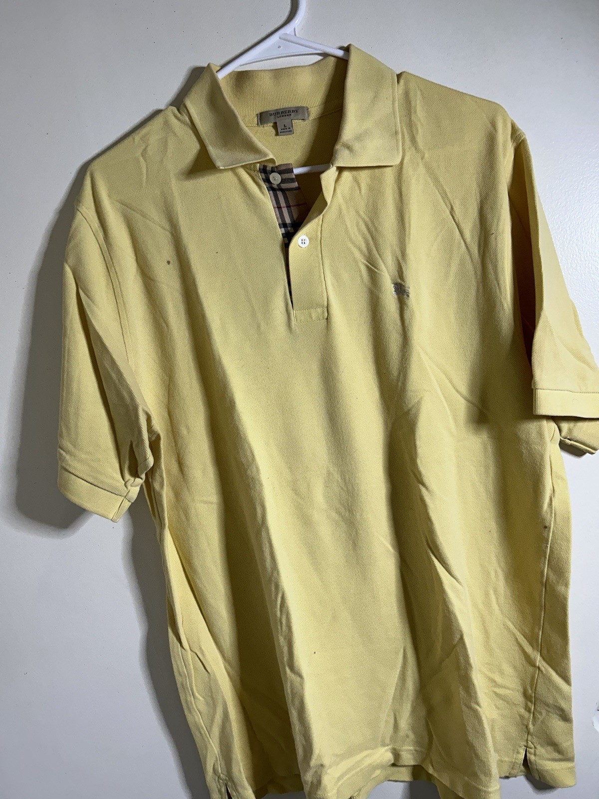 Burberry Short Sleeve men’s large Fair condition has some stains shown in pictures other than that it’s in great condition pre owned Open to your suggestions ❤ No returns accepted ❌
