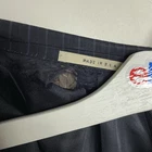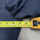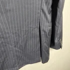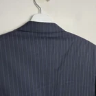 Crafted for the discerning gentleman, this Burberry Made In USA blazer is a testament to classic styling with a contemporary twist. Featuring a timeless navy and Hudson stripe design, the jacket is meticulously tailored from the finest wool, ensuring both warmth and comfort. Its regular medium size, with a 39-inch chest, provides a comfortable and flattering fit for a variety of occasions. The blazer boasts a refined two-button silhouette that adds a touch of sophistication to any ensemble. With its sharp striped pattern and understated blue hue, this piece effortlessly embodies the essence of American craftsmanship while maintaining the ease of a European size M. Whether for business or a formal event, this Burberry jacket is an impeccable choice for those who appreciate attire with a pedigree. Has some large tearing on the inside as shown in photos.